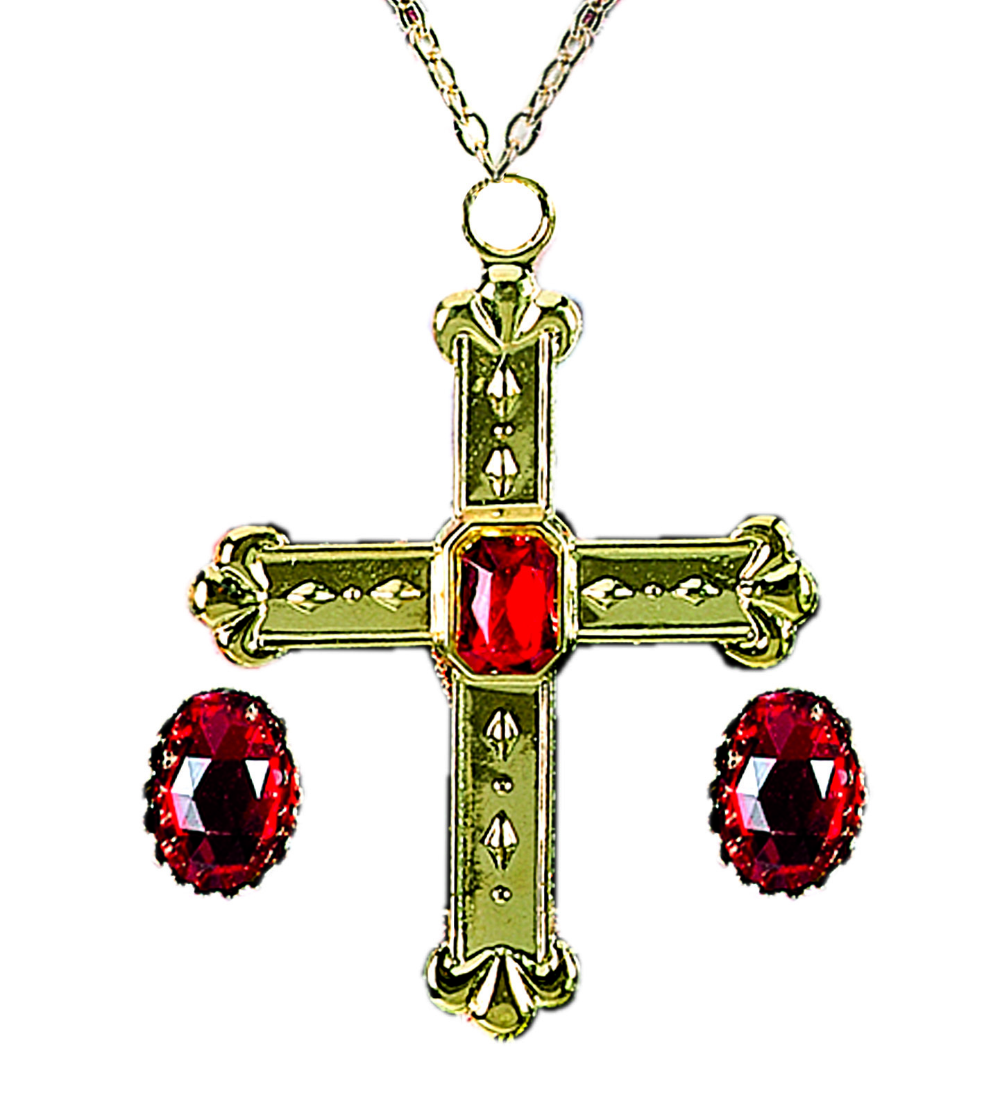 Náhrdelník s křížem a dva prsteny. Pro převlek za kardinála, papeže, nebo jiného hodnostáře. Materiál: 85% ocel, 15% PMMA Rozměr kříže: 10 x 8 cm przeczytaj całość