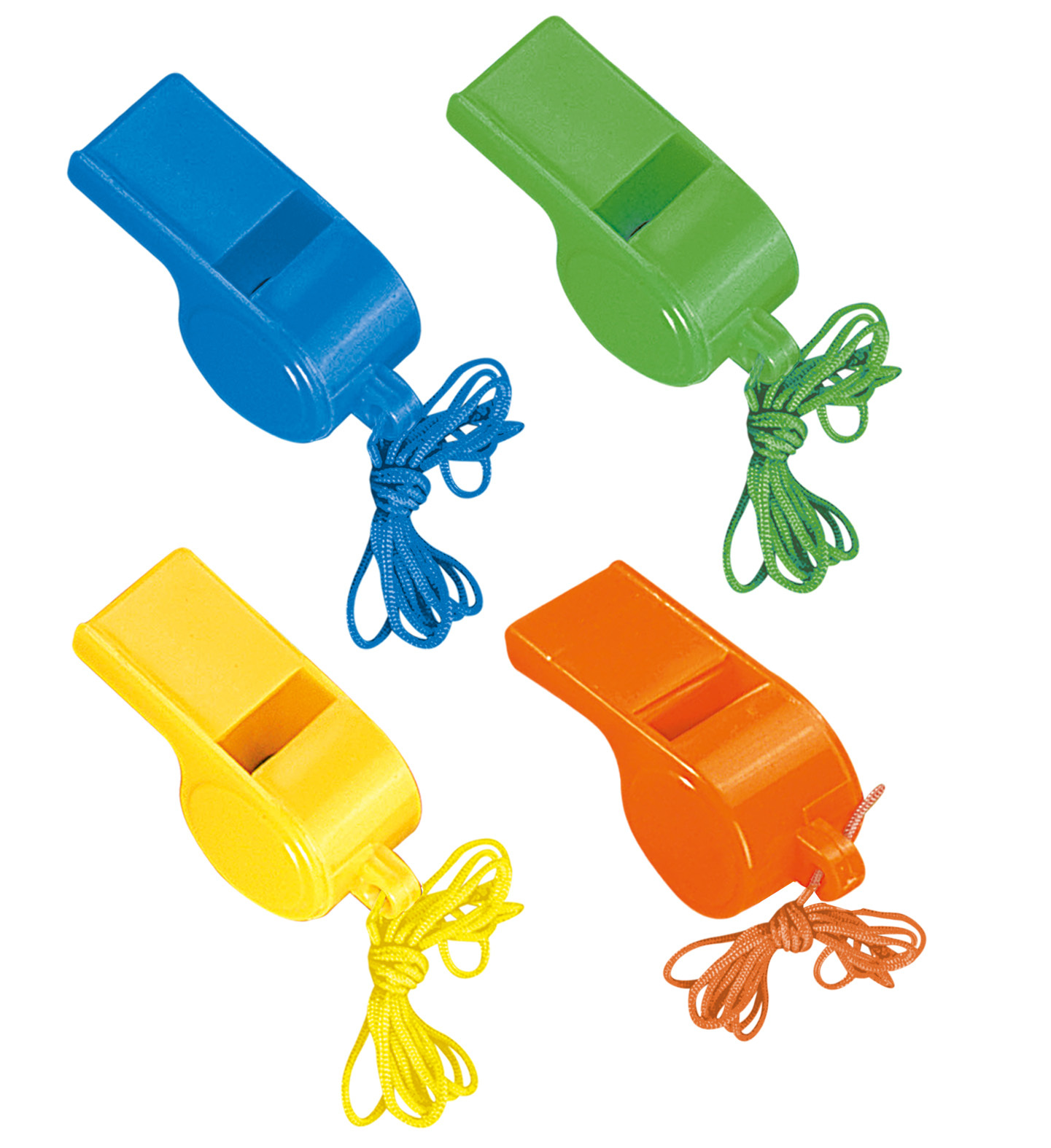 Zestaw zawiera 4 plastikowe gwizdki w jaskrawych neonowych kolorach, które natychmiast przyciągają uwagę. Dzięki dołączonym sznurkom można je wygodnie zawiesić na szyi, mieć zawsze pod ręką. Gwizdki są lekkie, praktyczne i gotowe do natychmiastowego użycia. Świetnie sprawdzą się nie tylko do powitań i dopingowania zawodników, ale także jako pomoc w organizacji zabaw czy jako atrakcyjny dodatek dla dzieci.
