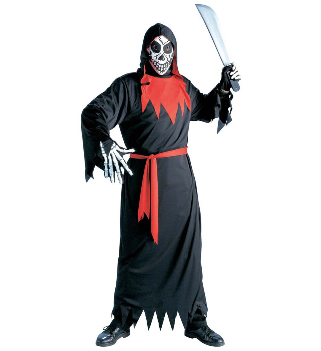 Pánský halloweenský kostým Fantom. Materiál: 100% polyester Velikost: L Kostým kostlivce obsahuje: šaty s kapucí, pásek a masku przeczytaj całość
