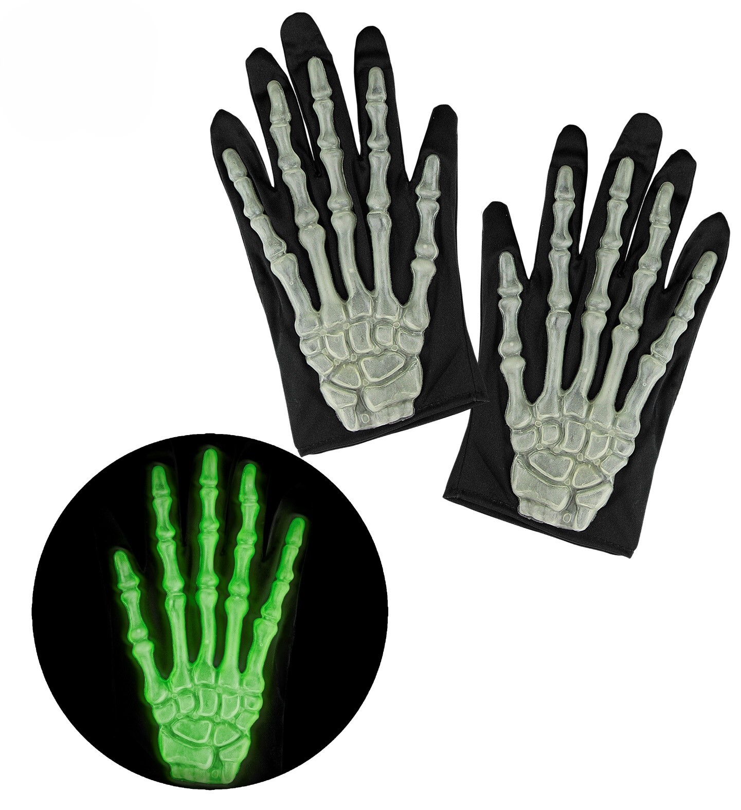 Rukavice kostlivec, svítící ve tmě, 3D, dospělá velikost. Materiál: 80% PVC, 20% polyester przeczytaj całość
