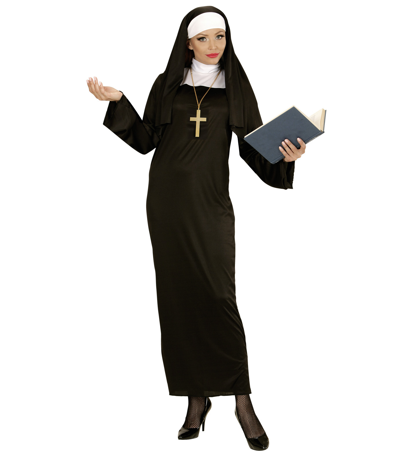 Karnevalový kostým jeptišky. Velikost: L Materiál: 100% polyester Určeno pro: dámský Kostým obsahuje: tunika s pokrývkou hlavy przeczytaj całość