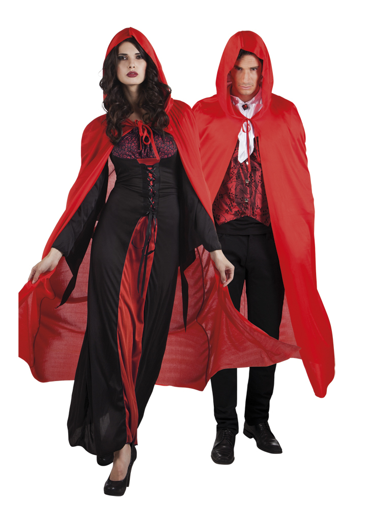 Červený látkový plášť s kapucí. Elegantní plášť pro tajuplný převlek. Materiál: 100% polyester Délka: 180 cm Délka od ramen dolů: cca 136cm Barva: červená przeczytaj całość