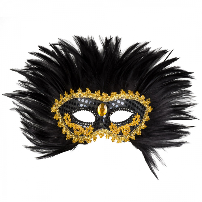 Péřová škraboška péřová Tato krásná benátská zlatá maska na oči je zdobená peříčky a kamínky. Je to skvělá maska na maškarní ples, karneval nebo párty s brazilskou tématikou. Materiál: 41% polypropylene, 32% peří, 10% polyethylene, 17% polyester Uchycení: stužkou Velikost: dospělá przeczytaj całość
