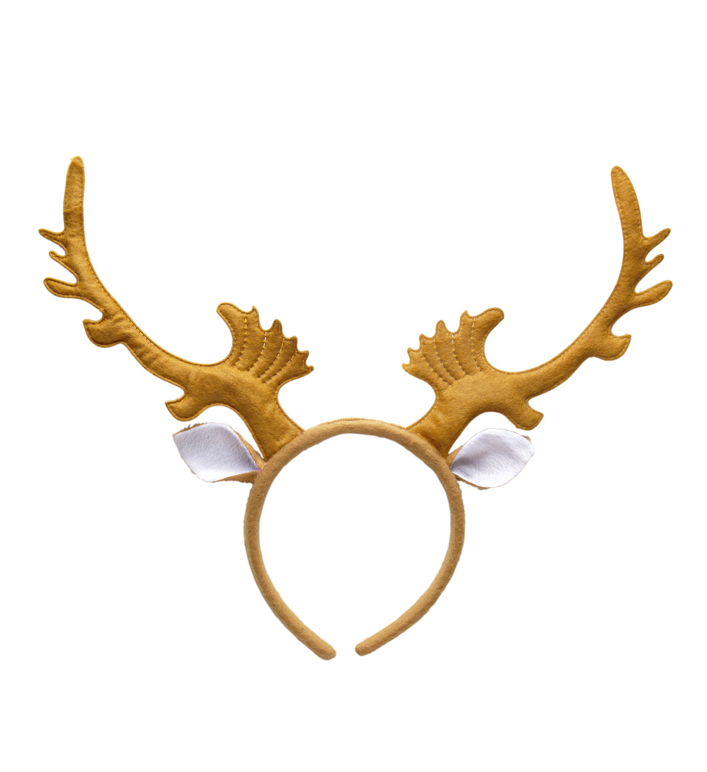 Béžové parohy sob, potažené textilií, na  čelence. Délka parůžku:  cca 20 cm Materiál: 60% polyester, 30% PE, 10% železo przeczytaj całość