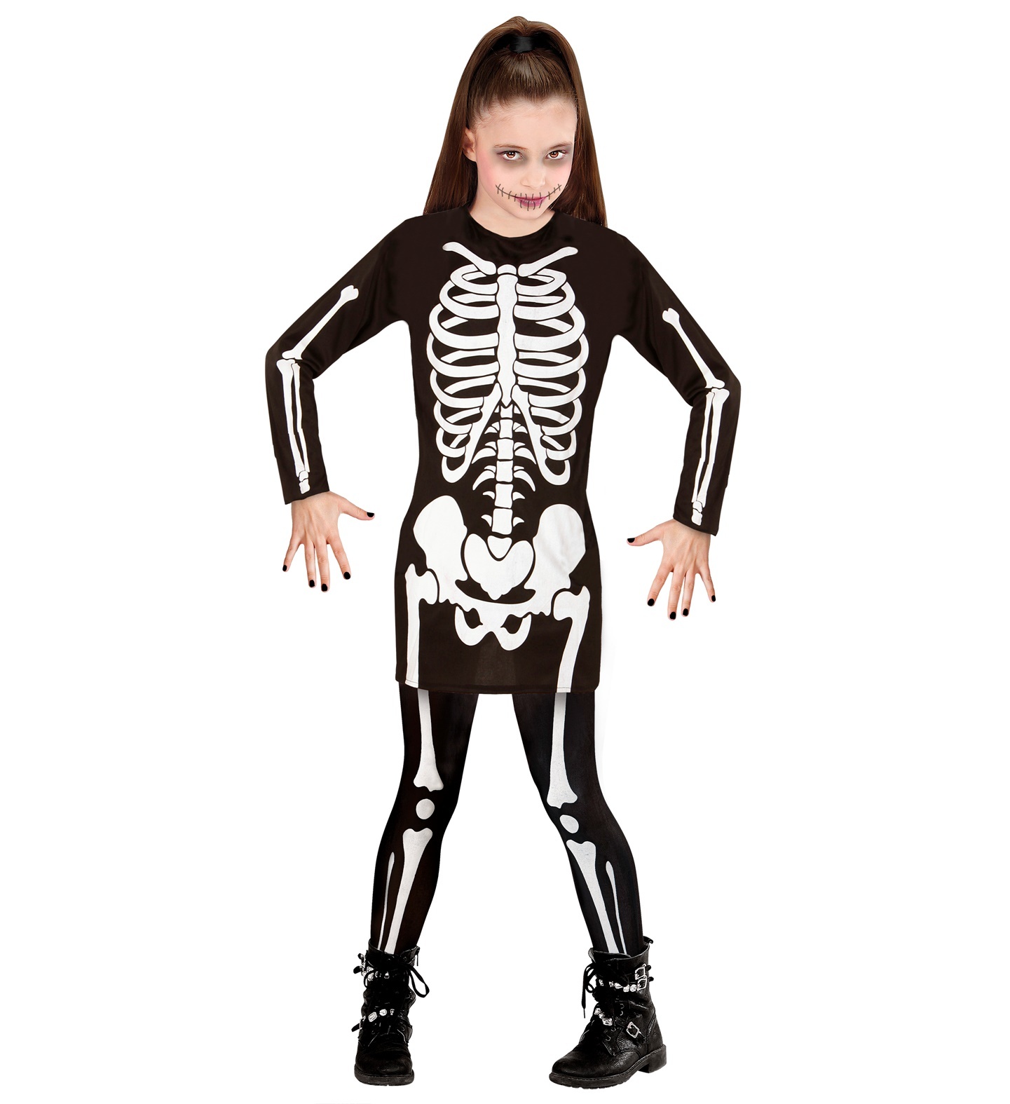 Kostým dívka kostlivec. Kostým skeleton neobsahuje rukavičky. Chystá se vaše slečna na karneval nebo na halloweenskou akci? Tento kostým je zajímavou volbou. Velikost: 158cm, 11-13 let Materiál: 100% polyester Určeno pro: dívčí Kostým obsahuje: krátké šaty Barva: černo-bílá przeczytaj całość