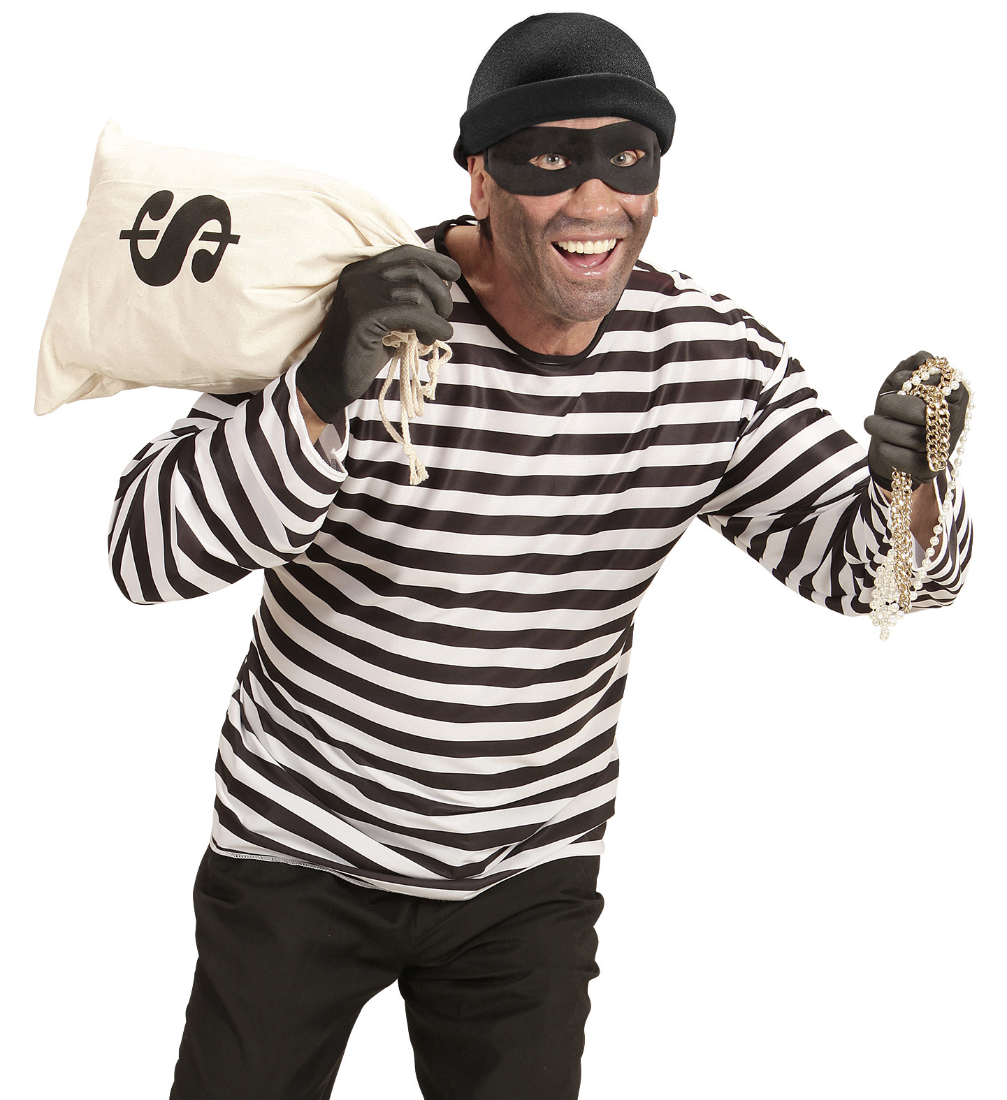 Komplet złodzieja zawiera: koszulka, czapka i maska