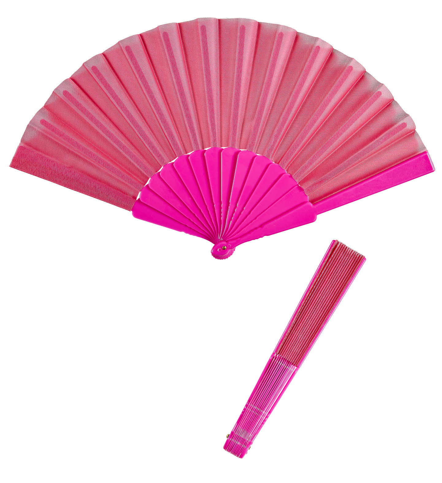 Růžový látkový vějíř s plastovým držátkem, vel. cca 23 cm. Materiál: 70% NYLON, 30% PS przeczytaj całość