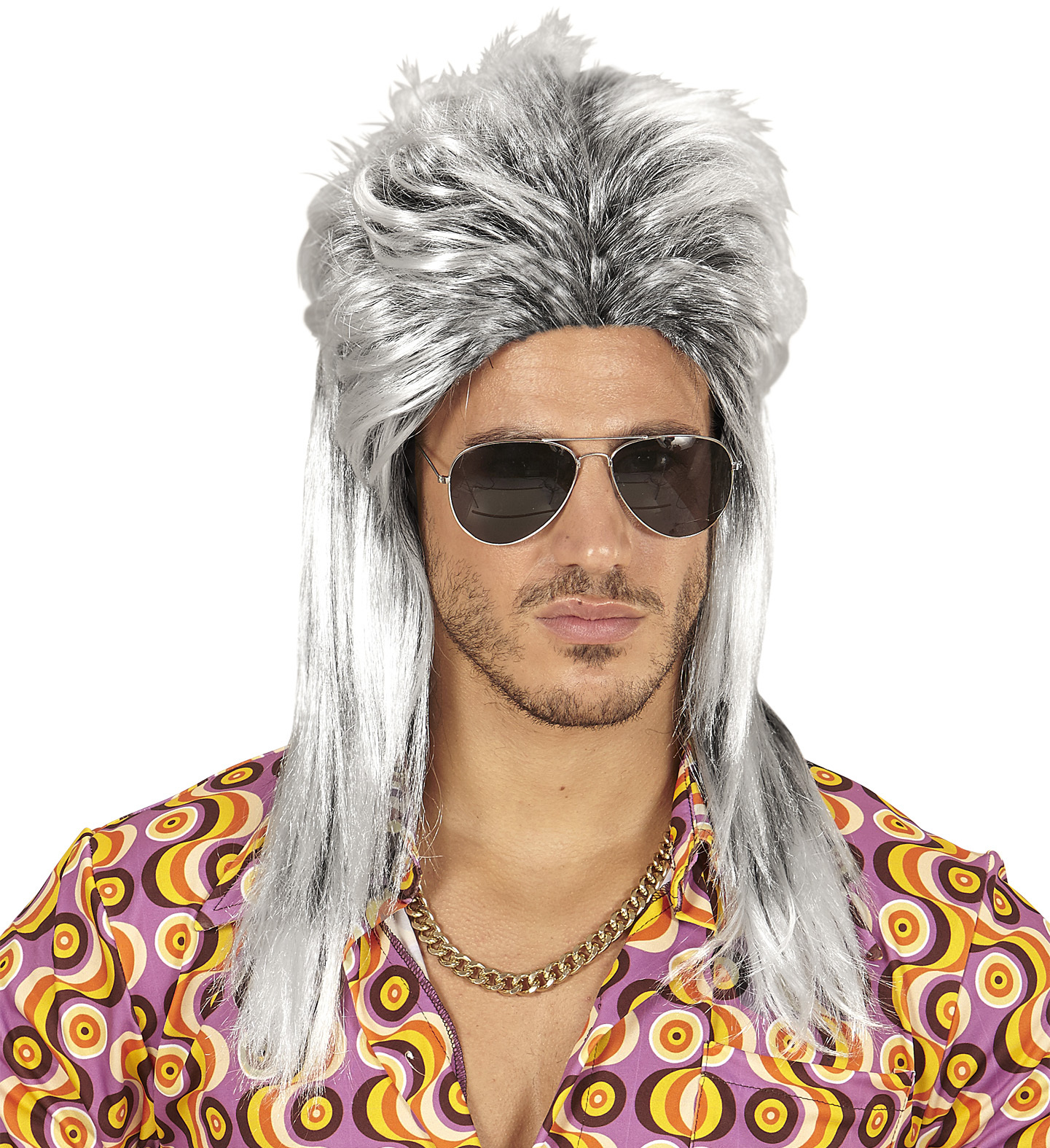 Paruka rocker, 70. léta. Tato paruka je doplňkem nejen retro kostýmů z konce minulého století. Barva: šedivá Materiál: 100% polyester Určeno pro: pánská Typ paruky: dlouhá rovná przeczytaj całość