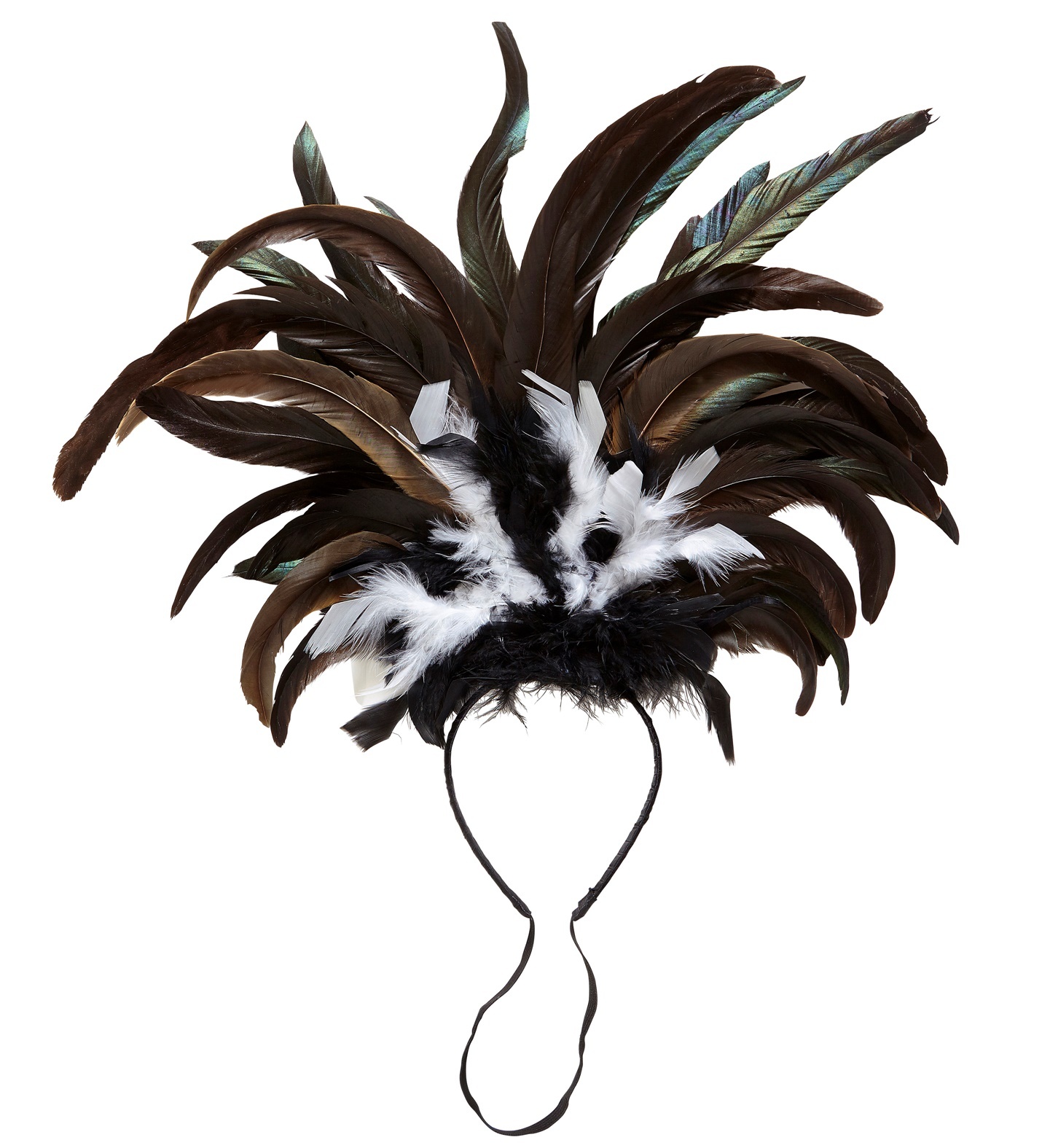 Péřová čelenka pro tanečnici, Rio, na gumičku. Materiál: 85% peří, 10% PVC, 5% polyester Barva: bílo-černá przeczytaj całość