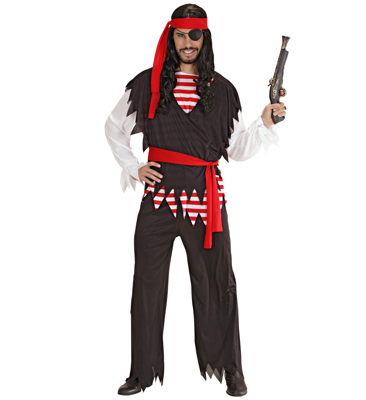 Karnevalový pirátský kostým pro dospělé.  Kostým bukanýra obsahuje: kalhoty, vestu, košili, pásek a šátek Velikost: XL Materiál: 100% polyester przeczytaj całość