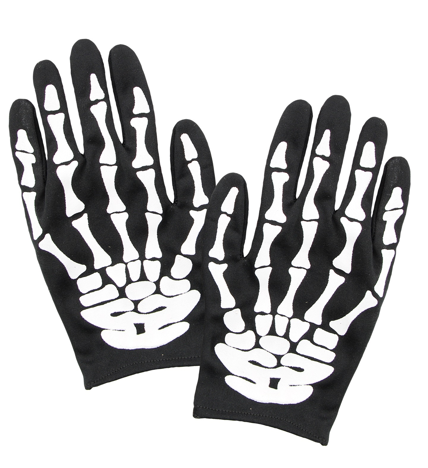 Rukavice kostlivec, černé s bílým potiskem. Celková délka rukavice je cca 25 cm, šířka cca 12 cm, mírně pružný materiál. Materiál: 100% polyester Velikost: dospělá przeczytaj całość