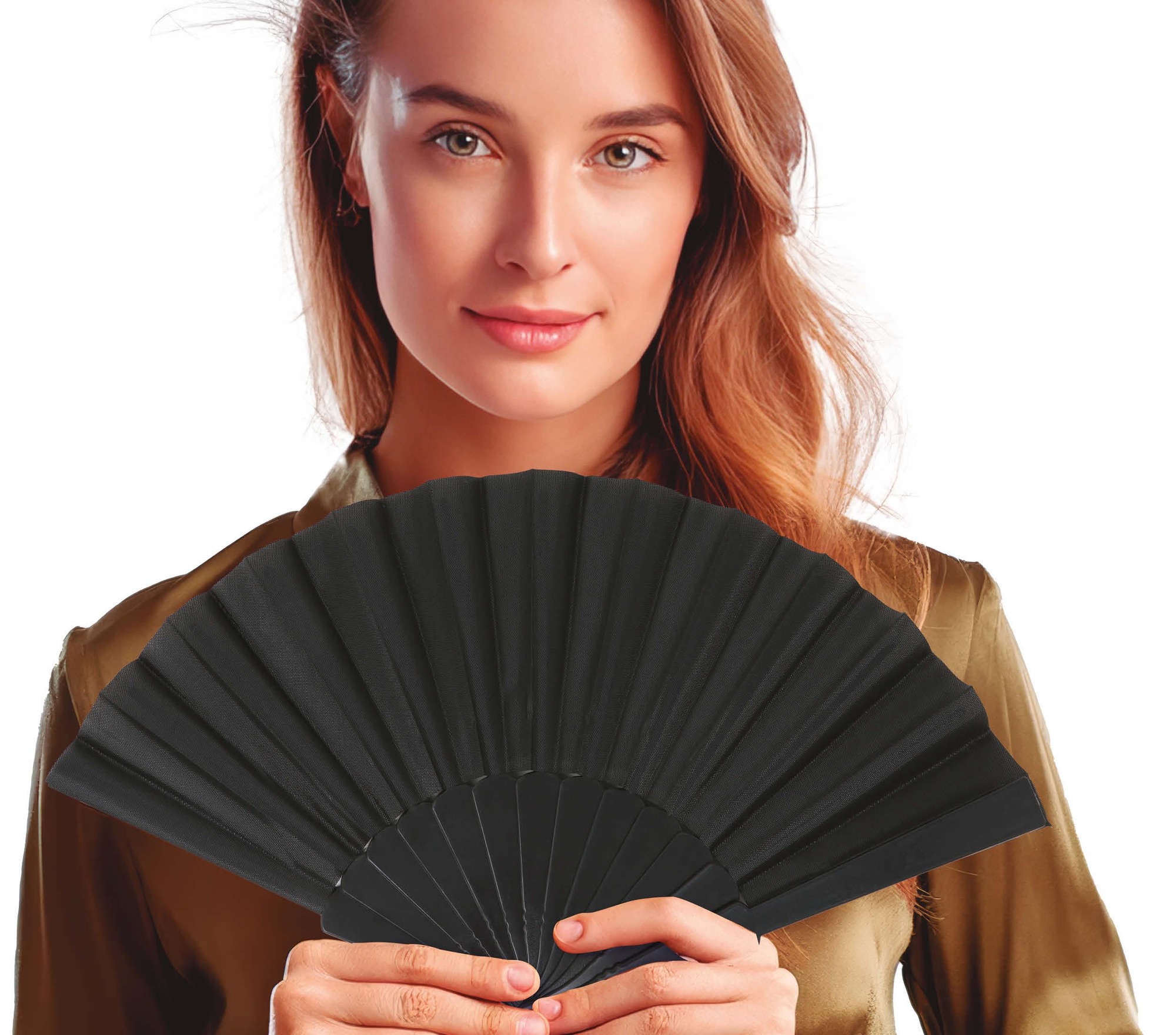 Ożyw swój wygląd stylowym dodatkiem, który nigdy nie zawodzi! Czarny materiałowy wachlarz to elegancki i praktyczny element, który doda Ci szyku na wydarzeniach towarzyskich i podczas codziennego noszenia.
