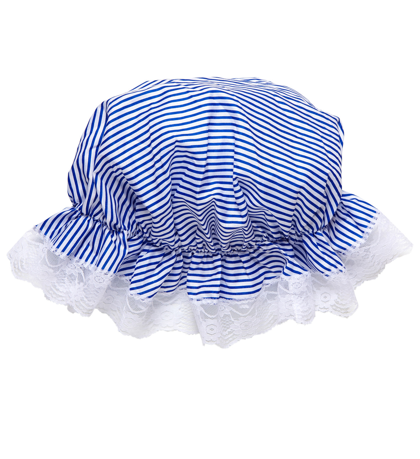Materiałowy niebiesko-biały, prążkowany czepiec firmy Widmann możemy użyć np. do spania lub jako dodatek do kostiumu niemowlaka. Wzdłuż obwodu wszyta jest gumka, aby czepiec lepiej trzymał.