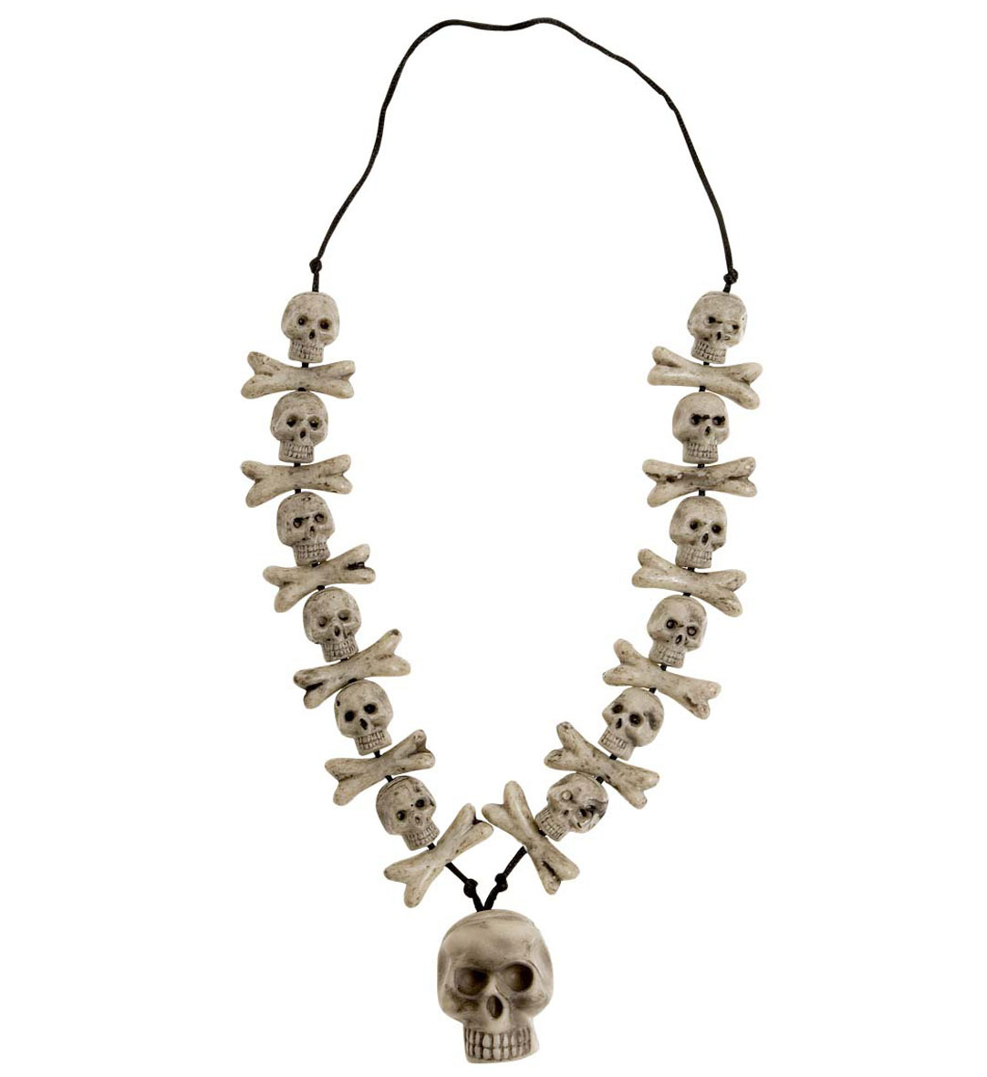 Naszyjnik z kości i czaszek, plastikowy, dodatek do kostiumu czarownicy lub innych strojów na Halloween.