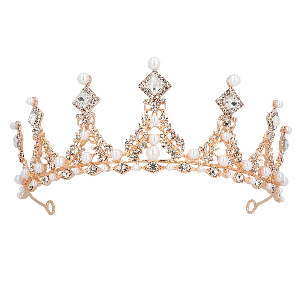 Ta luksusowa metalowa korona doskonale pasuje do kostiumu królewskiej księżniczki lub królowej. Korona w kolorze różowego złota jest zdobiona perłami i błyszczącymi kamieniami, dzięki czemu jest to idealny dodatek do włosów, który wyróżni się podczas karnawału lub balów maskowych.