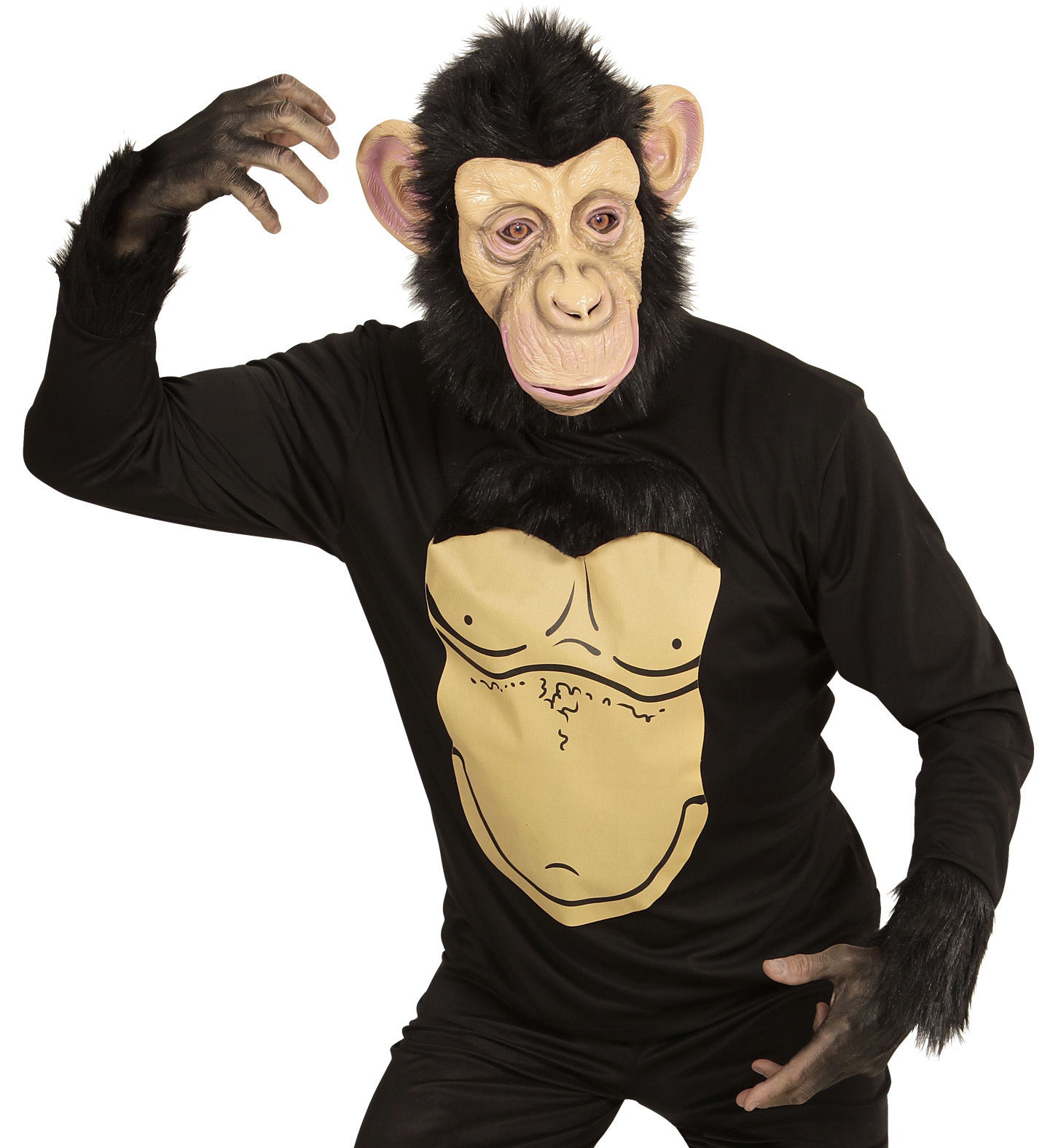 Kostým šimpanze pro dospělé. Velikost: M/L Materiál: polyester, latex Kostým obsahuje: triko a masku przeczytaj całość