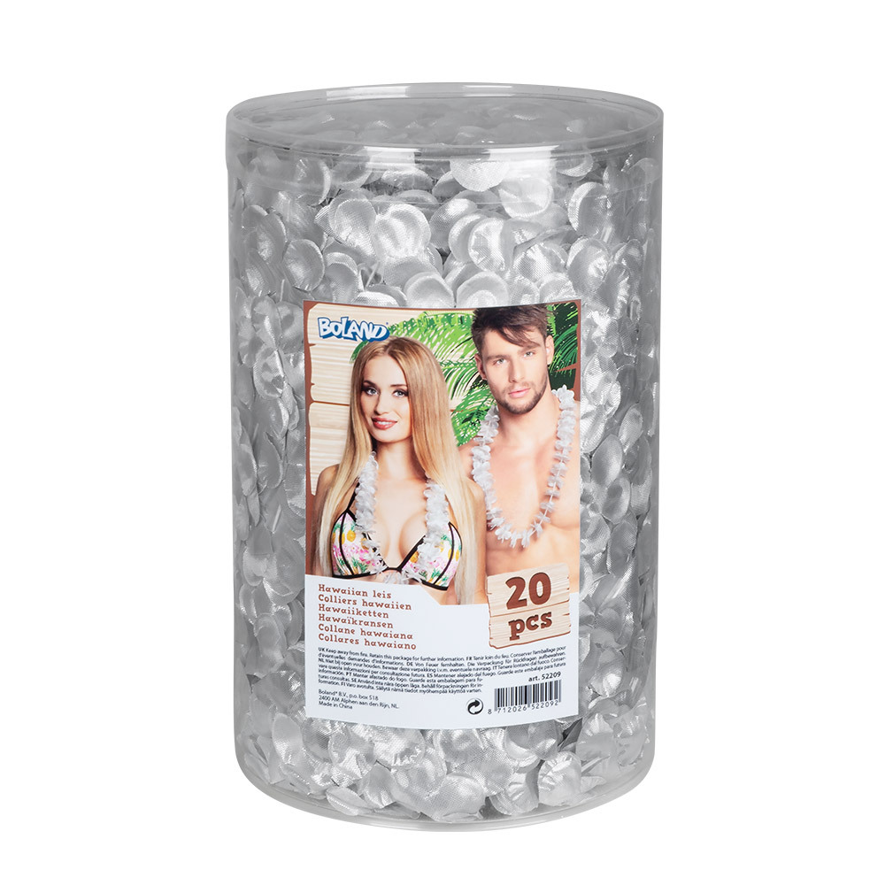 Sada 20 ks stříbrných havajských věnců v plastové dóze. Materiál: 90% polyester, 10% polypropylene przeczytaj całość