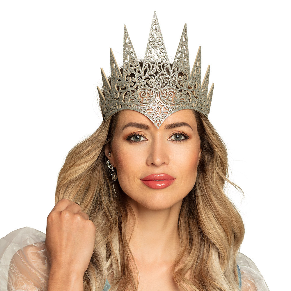 Ta srebrna korona jest niezbędna, gdy przebierasz się za lodową królową. Korona jest wykonana z pianki gumowej i ma gumkę, dzięki czemu dobrze trzyma się na głowie.