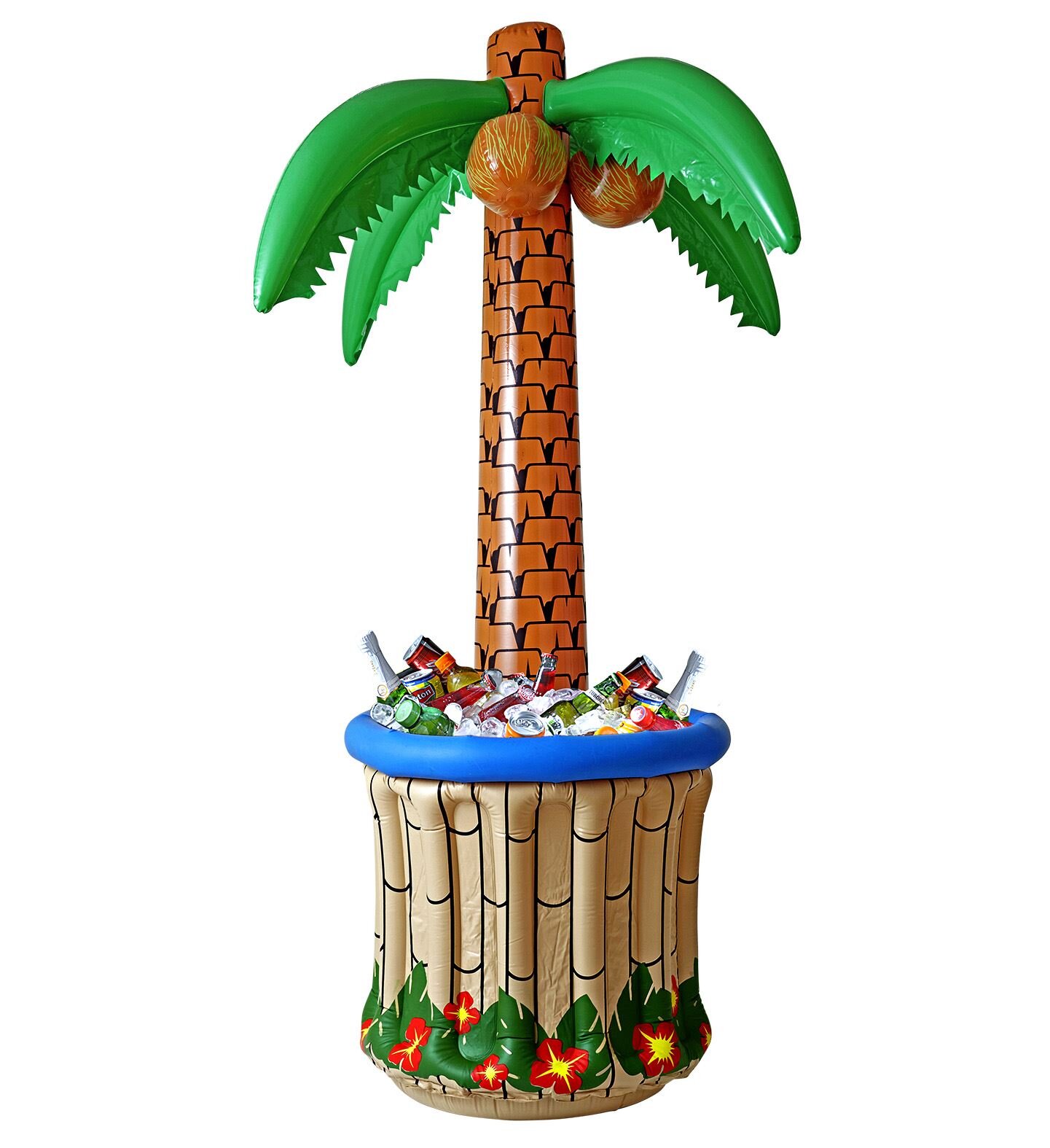 Nadmuchiwana palma, chłodziarka na napoje. Dekoracja na letnie przyjęcie w ogrodzie.