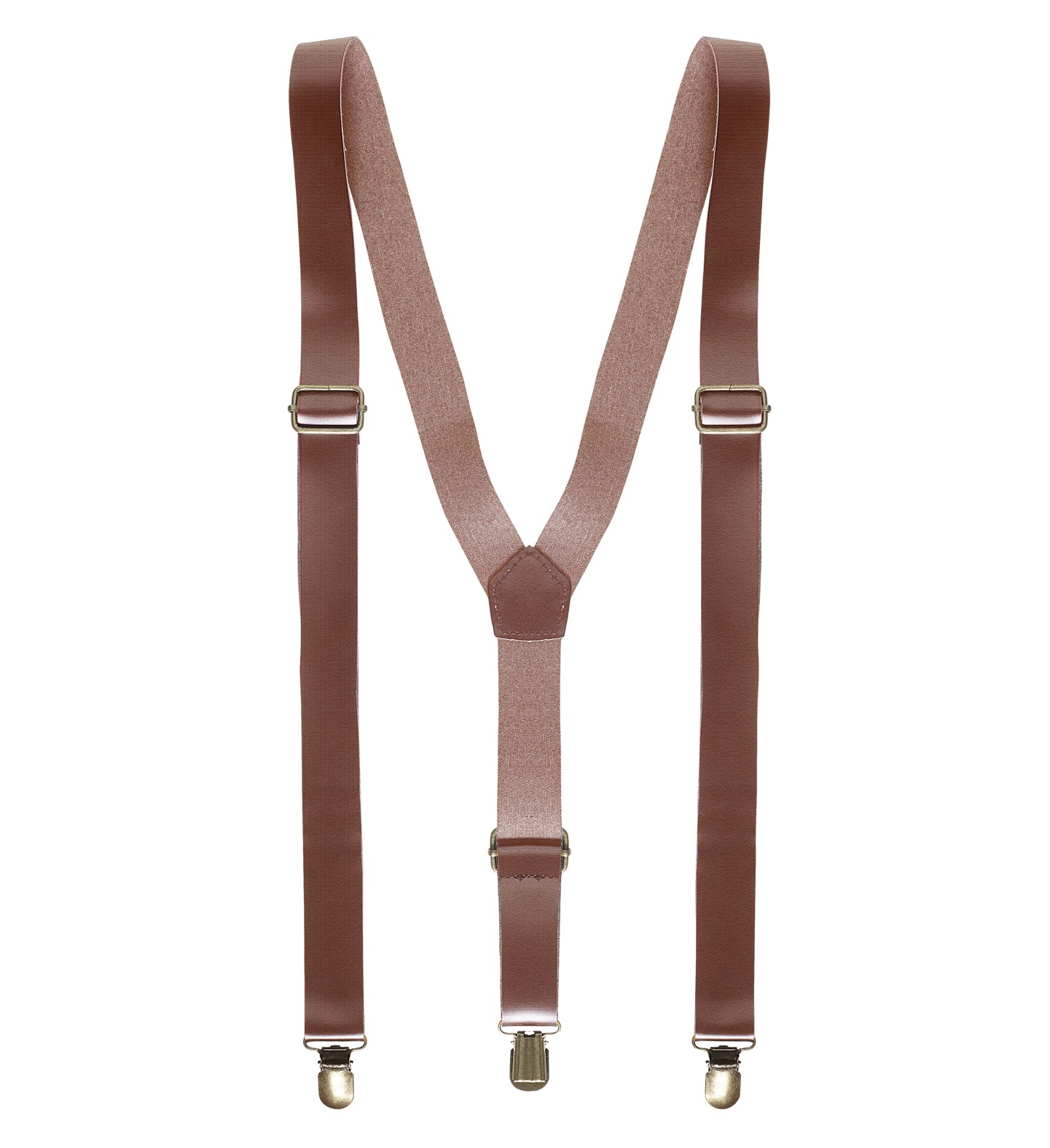Brązowe szelki dla kowboja o skórzanym wyglądzie. Dodatek dla faceta z Dzikiego Zachodu.