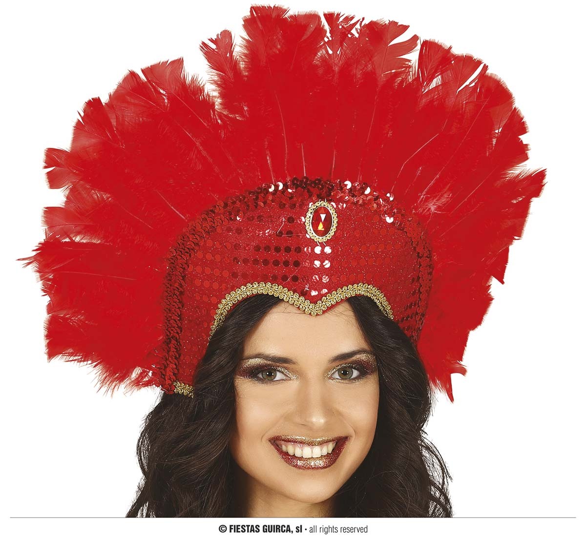 Fiestas Guirca Červená péřová čelenka s flitry Samba