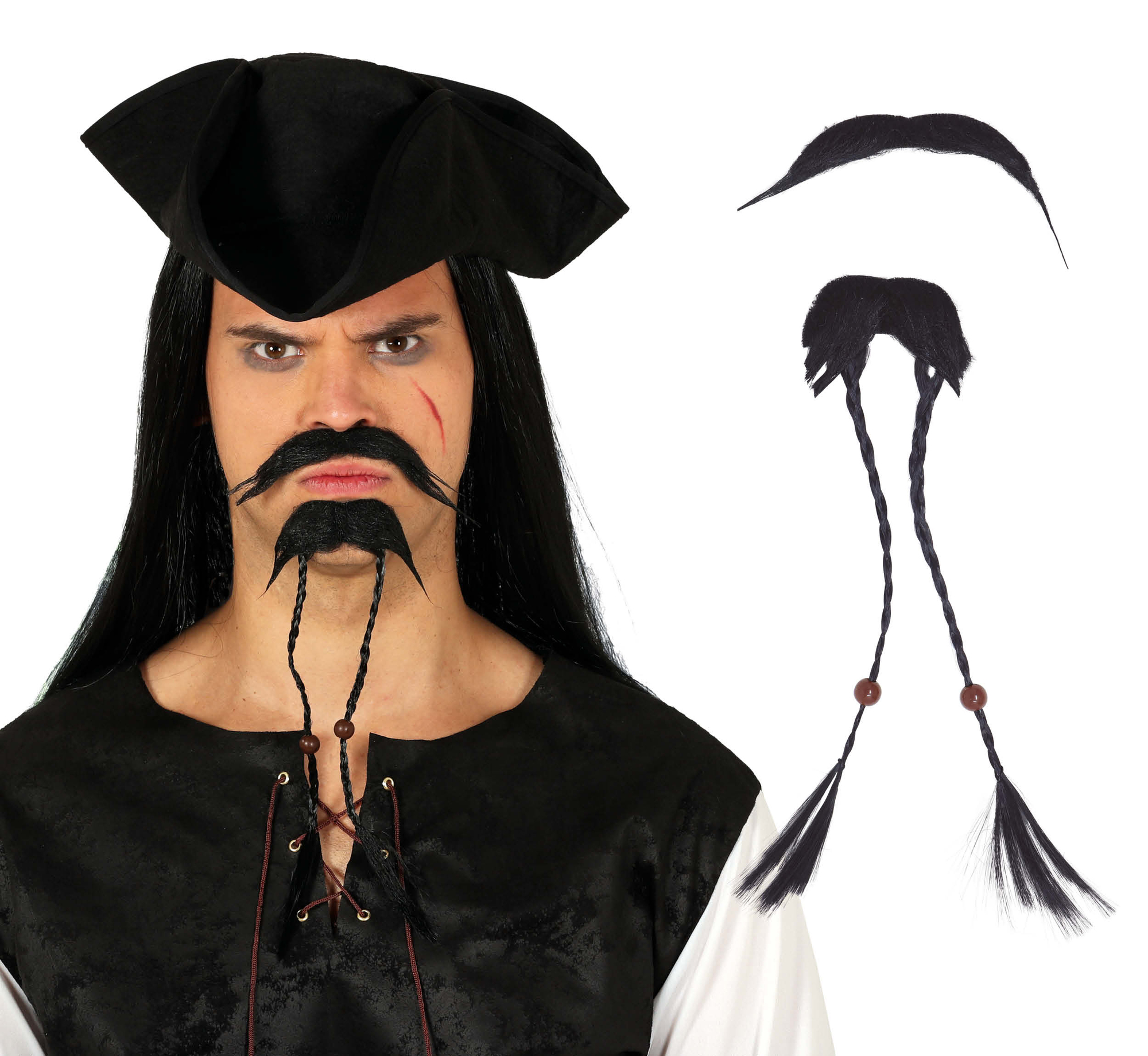 Fiestas Guirca Pirátské černé vousy a bradka s copánky