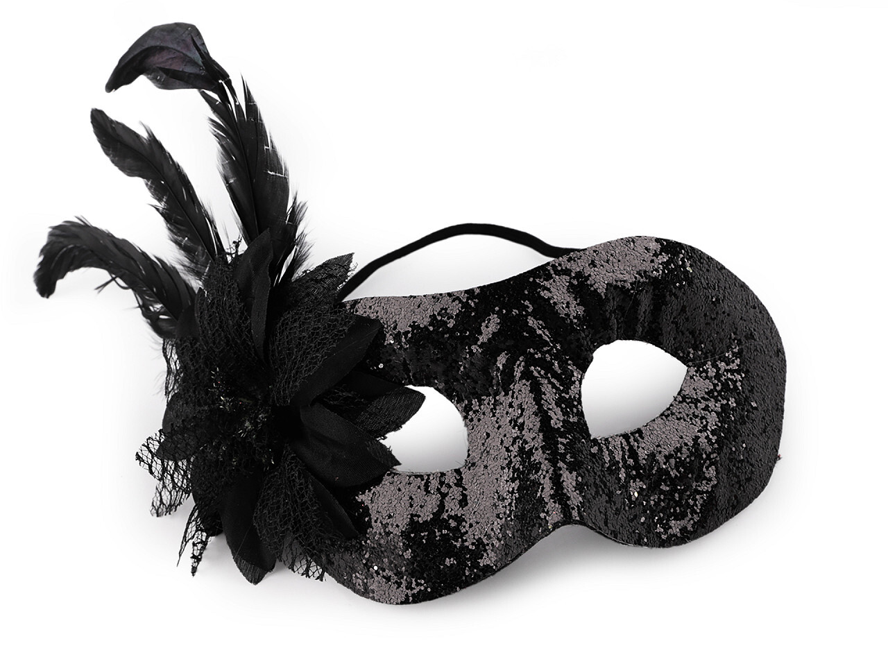Karnevalová maska - škraboška s peřím - 1 ks - 2 černá