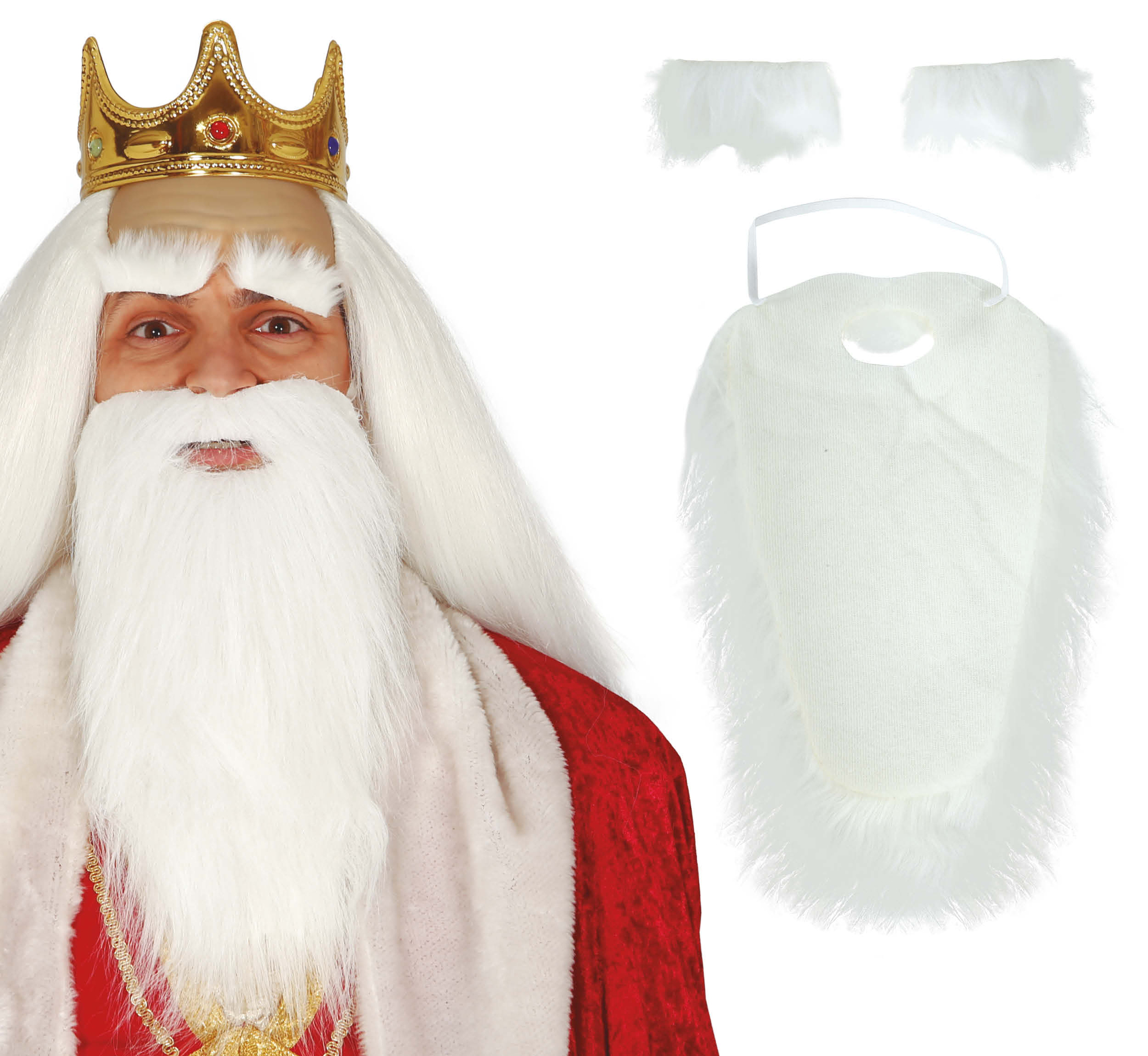 Dlouhé bílé vousy s knírem a obočím Vousy vhodné pro převlek za Mikuláše, nebo Santu Uchycení gumičkou vousů, obočí samolepící Materiál: 100% polyester Barva: bílá przeczytaj całość