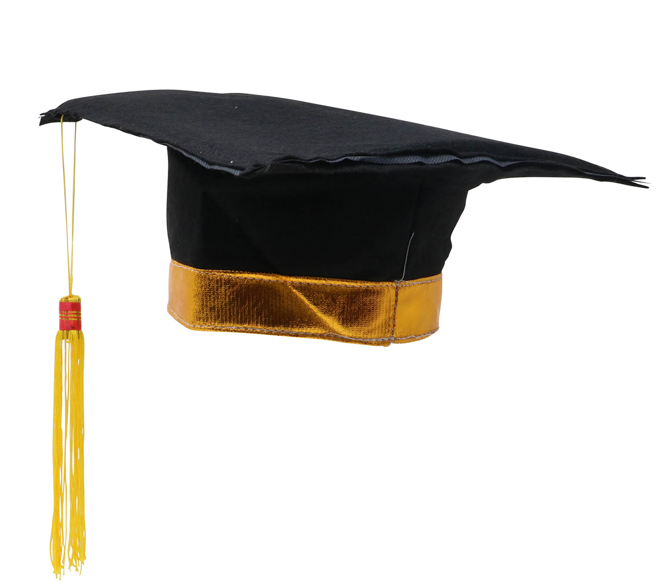 Piękny kapelusz promocyjny, który wyróżnia się dzięki złotej krempie i żółtemu chwostowi. Czapka jest wykonana z miękkiej tkaniny poliestrowej, dzięki czemu wygodnie leży na głowie, dlatego zdecydowanie poleca się jej noszenie podczas uroczystości ukończenia studiów. :)