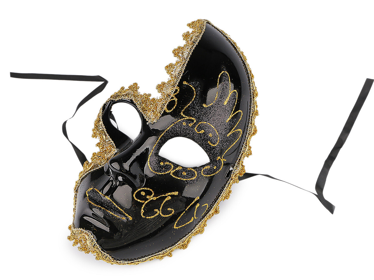 Benátskou masku využijete na večírky, plesy, párty, karnevaly i divadelní představení. Přidá mystiku vašemu vzhledu. Místy je pokrytá třpytivými glitry a dozdobená leonským prýmkem.Zavazuje se pomocí stuhy. przeczytaj całość