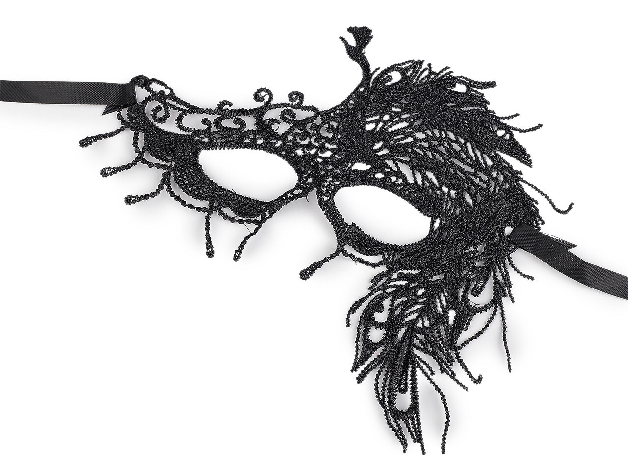 Karnevalová maska - škraboška krajková - 1 ks - 8 černá