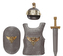 Součástí je dětský románský set, který obsahuje helmu, brnění, štít a meč.  przeczytaj całość