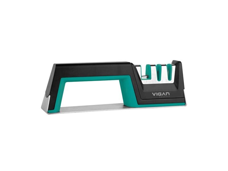 Univerzální pomocník do každé kuchyně, ergonomické zpracování pro snadné použití, dostatek prostoru pro pohodlné uchycení madla garantuje pevný a stabilní úchop, třístupňové broušení, 3 – pro broušení nůžek, 2 – obnoví tupé ostří čepele nože, 1 – jemně doostří a doleští čepel nože, brusné kameny ze slinutého karbidu, keramiky a kameny s diamantovým povrchem, umožní rychlé a bezpečné nabroušení jakéhokoli kovového nože nebo nůžek, brousek disponuje nerezovou základnou s pryžovými prvky zajišťující stabilitu při ostření a chrání proti případnému posuvu po povrchu, designové doplňky z nerezové oceli dodávají výrobku luxusní vzhled a snadno se čistí.