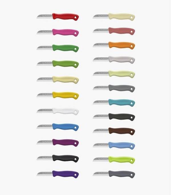 Uniwersalny nóż kuchenny odpowiedni do krojenia warzyw, grzybów i innych produktów spożywczych. Dostępny w różnych wariantach kolorystycznych.