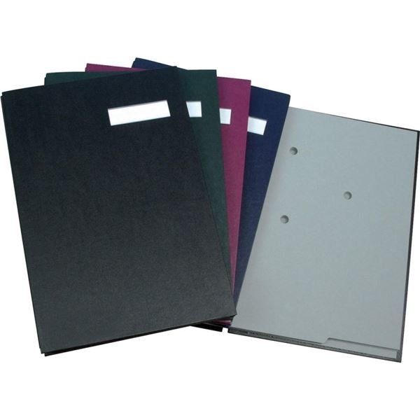 Podpisová kniha z tvrzené lepenky s vysokou pevností, látkový hřbet, PP kašírované desky Vnitřní listy z šedého savého papíru se 3 otvory* formát-A4, provedení-20 oddělení, barva-černá przeczytaj całość