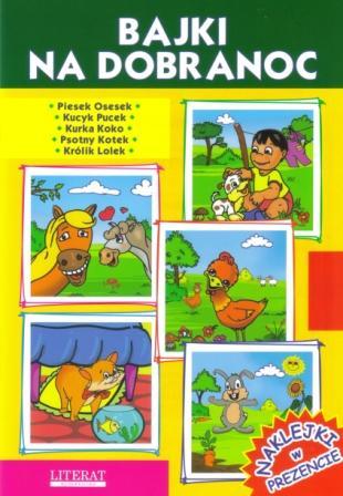 Zbiór pięknie ilustrowanych bajek na dobranoc dla najmłodszych dzieci, w którym znajdziesz takie bajki, jak: Piesek Osesek Kucyk Pucek Kurka Koko Psotny Kotek Królik LolekBajki są rymowane, napisane prostym językiem i dużą czcionką.Dodatkowo w książce znajdziesz 12 naklejek z postaciami z bajek. przeczytaj całość