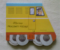 Książeczka w kształcie pociągu, wykonana z grubej, kolorowej, lakierowanej tektury. Ma ruchome kółka. Książka opowiada o pracy maszynisty i konduktorki, którzy są załogą pociągu pospiesznego. przeczytaj całość