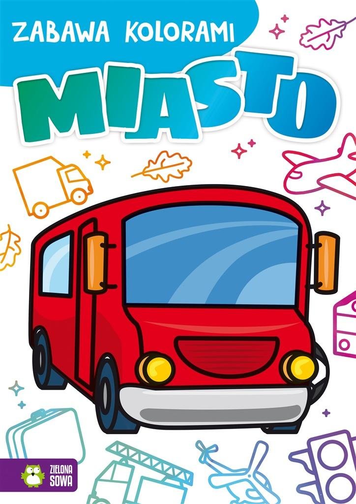 Baw się kolorami i spraw, aby miasto rozbłysło feerią barw. Kto idzie do parku z pieskiem, a kto spieszy się na dworzec z walizką? Jakiego koloru jest autobus, a jakiego samolot? Pokoloruj miejskie budowle i pojazdy najpiękniej, jak potrafisz!