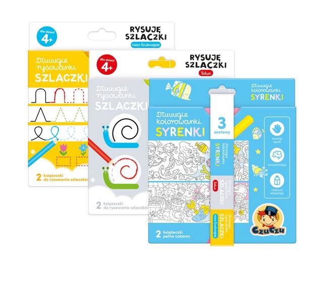 Kreatywny zestaw rysowanek2x Dłuuugie rysowanki Szlaczki + Dłuuugie kolorowanki SYRENKIdla dzieci w wieku 4+Kredki w dłoń, czas kontynuować przygodę z kredkami. Rysujcie szlaczki i kolorujcie Syrenki!Kreatywny zestaw zawiera 3 tytuły: Dłuuugie rysowanki Szlaczki Łatwe, Dłuuugie rysowanki...