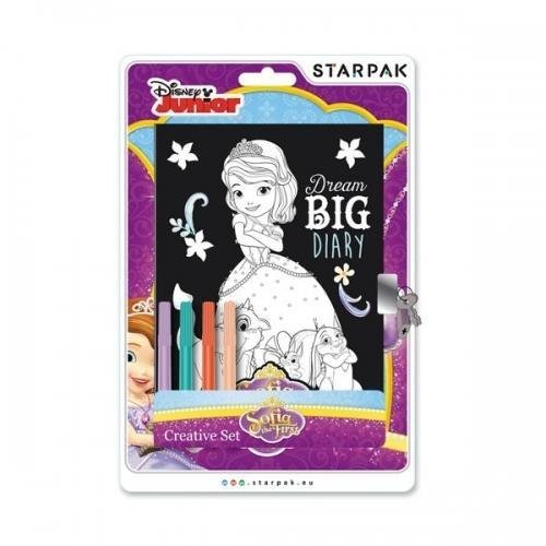 Zestaw kreatywny z pamiętnikiem o wymiarze 178x127mm i pisakami. Okładka jest zadrukowana welurowym, wypukłym nadrukiem stanowiącym kontury obrazka z ulubionymi bohaterami do samodzielnego pokolorowania, dzięki czemu każdy pamiętnik będzie oryginalny i unikatowy. Pamiętnik jest zamykany na kłodkę... przeczytaj całość