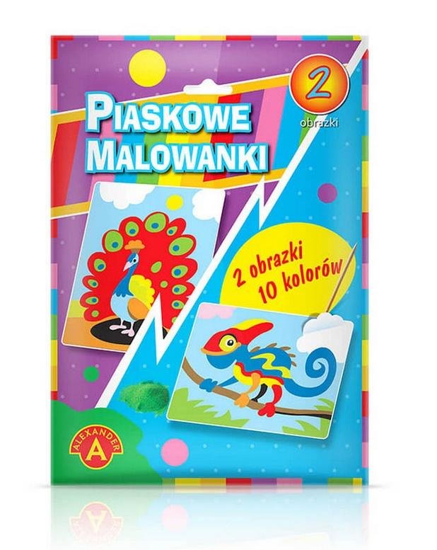 Artystyczna zabawa malowania piaskiem polega na odsłanianiu kolejnoposzczególnych, naciętych elementów obrazka, tak by odkryć klejącą powierzchnięwybranego fragmentu. Każdy odsłonięty fragment posypuje się piaskiem w kolorzezgodnym ze wzorem obrazka zamieszczonym w instrukcji i napudełku. przeczytaj całość