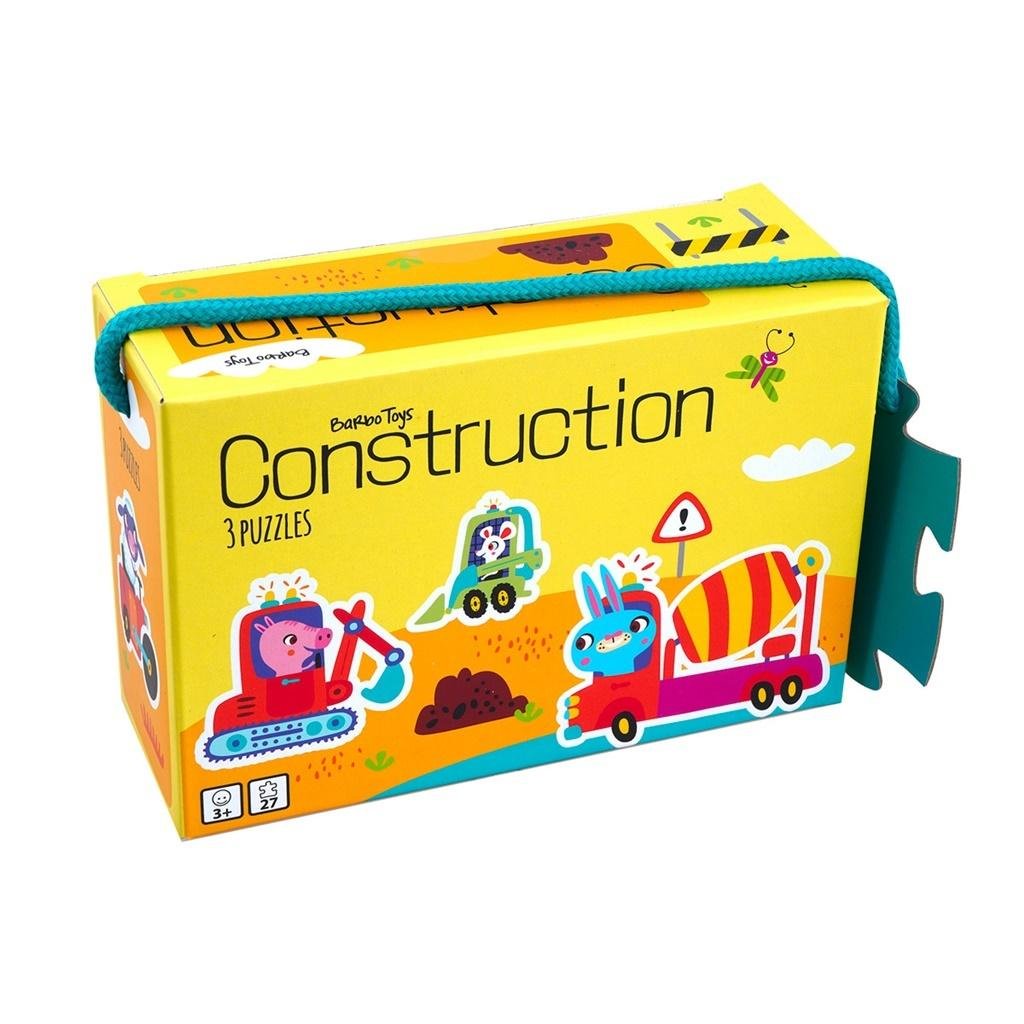 Moje pierwszepuzzle, 3 układanki, 6, 9, 12 el., Na budowie, Little BrightOnesPiękne puzzle, które pozwolą rozwijać dziecięcą zręczność,koordynację i wyobraźnię. Zestaw składa się z 3 układanek o różnym stopniutrudności - 6, 9 i 12 elementowe. Puzzle zostały zapakowane w piękne pudełko zzawieszką,...