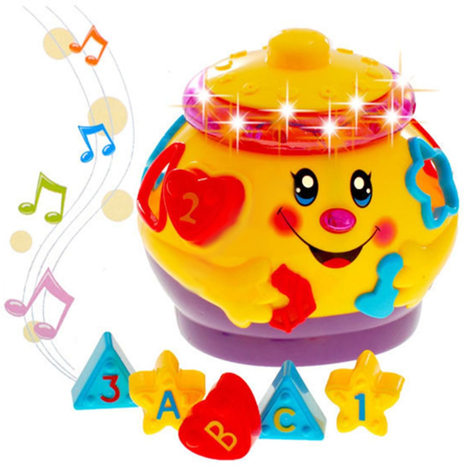 Usměvavý hudební interaktivní hrnec s vkládačkou žlutý