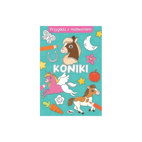 Sympatyczne ilustracje przedstawiające KONIKI.Wesołe RYMOWANE podpisy. Urocza książeczka do kolorowania, w której dzieci znajdą swoich ulubieńców – wesołe koniki. Mały artysta będzie mógł pokolorować kucyka, jednorożca lub pegaza oraz towarzyszące im dzieci.Książka• ćwiczy ZDOLNOŚCI MANUALNE•...