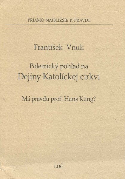 Autor podáva polemický pohľad na dielo známeho teológa Hansa Künga Katolícka cirkev; Stručné dejiny. Knihe sa totiž dostávalo mimoriadne veľa pozornosti a publicity. Napriek tomu, že za posledných dvanásť rokov na Slovensku vyšlo niekoľko pôvodných prác, prekladov a reedícií s témou cirkevných...