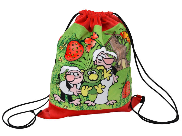 Lekki materiałowy woreczek z motywem Křemílka, Vochomůrki i Rákosníčka, który ściąga się sznurkami i można go nosić na plecach jak plecaczek. Wymiary 40×33 cm. Nadaje się do prania. Nie jest zabawką. przeczytaj całość