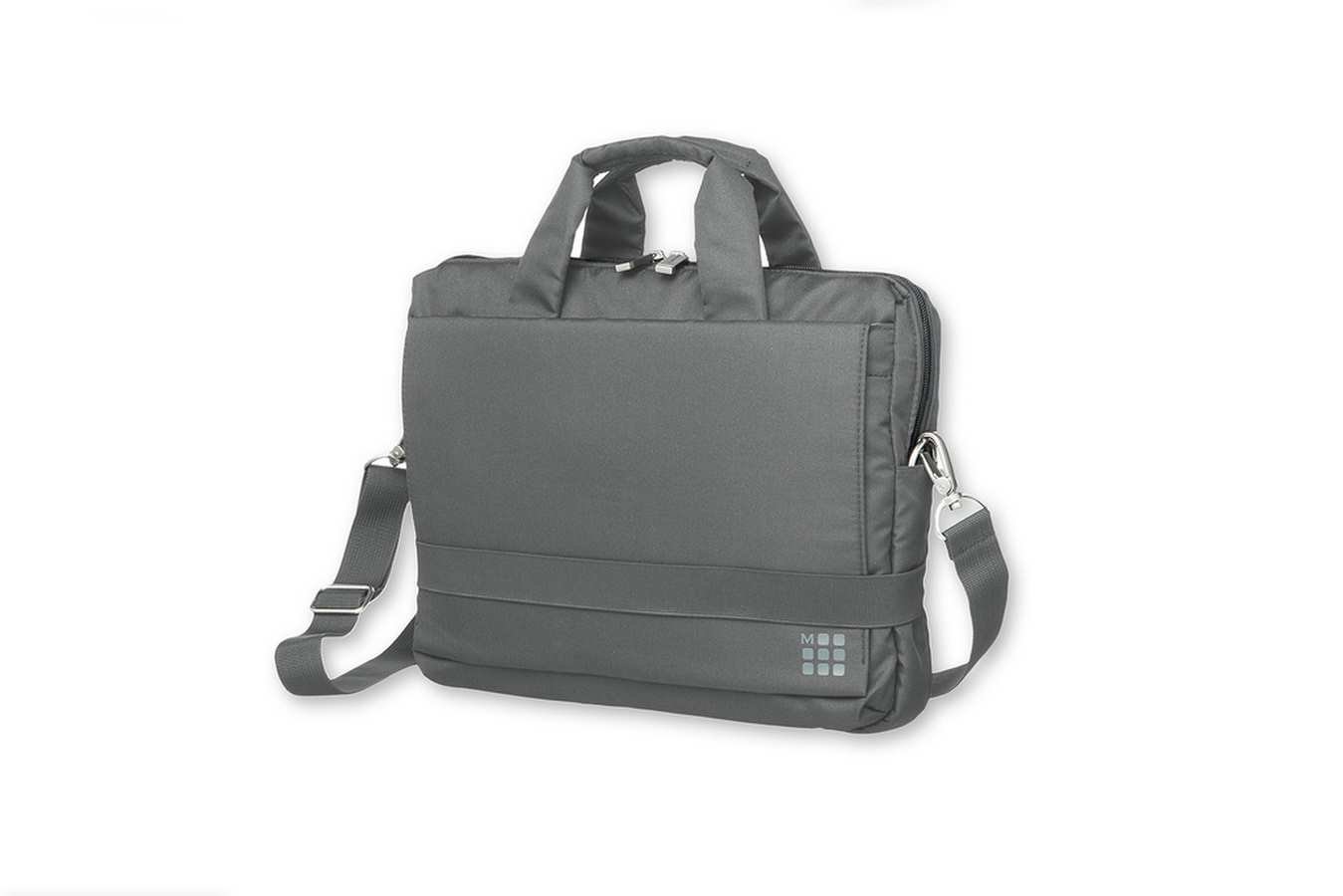 Horizontální brašna pro noteboky do velikosti 13, 3“. Je vyrobena z nepromokavého tmavě šedého polyamidu. Zavírá se pomocí pružné pásky a na zip. Je vybavena popruhem přes rameno, který je možné odepnout. Na zadní straně je popruh, pomocí něhož se dá připevnit na rukojeť kufru. Vepředu a vzadu jsou kapsy na zip. Rozměry: 35 x 27 x 8,5 cm