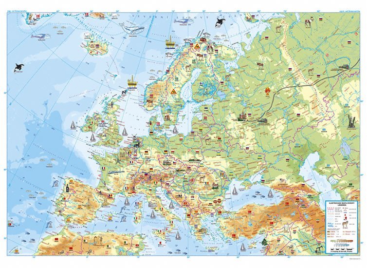Mapa Evropy doplněná ilustracemi. Mapa je laminovaná. przeczytaj całość