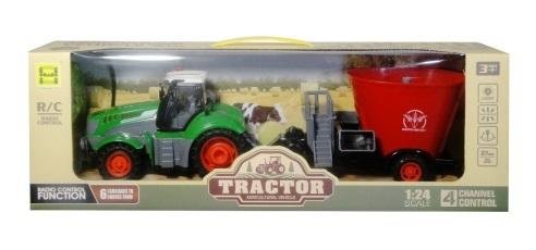 Zabawka traktor sterowany z przyczepą. Pojazd porusza się we wszystkich kierunkach: do przodu, do tyłu, skręca w prawo i w lewo. Zabawka świeci kolorowym światełkiem. Zabawka działa na baterie typu AA (niezałączone) oraz Ni-Cd (załączone) do zabawki. Całość zapakowana jest w kartonowe opakowanie z przezroczystym okienkiem. Zabawka przeznaczona dla dzieci od 3 roku życia. Podane wymiary są wymiarami opakowania. .