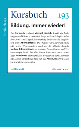 Sie gilt als Universallösung für so ziemlich jede Herausforderung unserer Zeit. Und sie steht heute im Rang eines Bürger- wenn nicht Menschenrechts. Umso erstaunlicher der Leerlauf der wiederkehrenden Diskussionen um Bildung. Ein Thema für das Kursbuch. Von Bildung spricht man, spätestens seit...